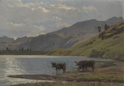 Paysage animé de vaches, huile sur carton marouflée sur toile, c...