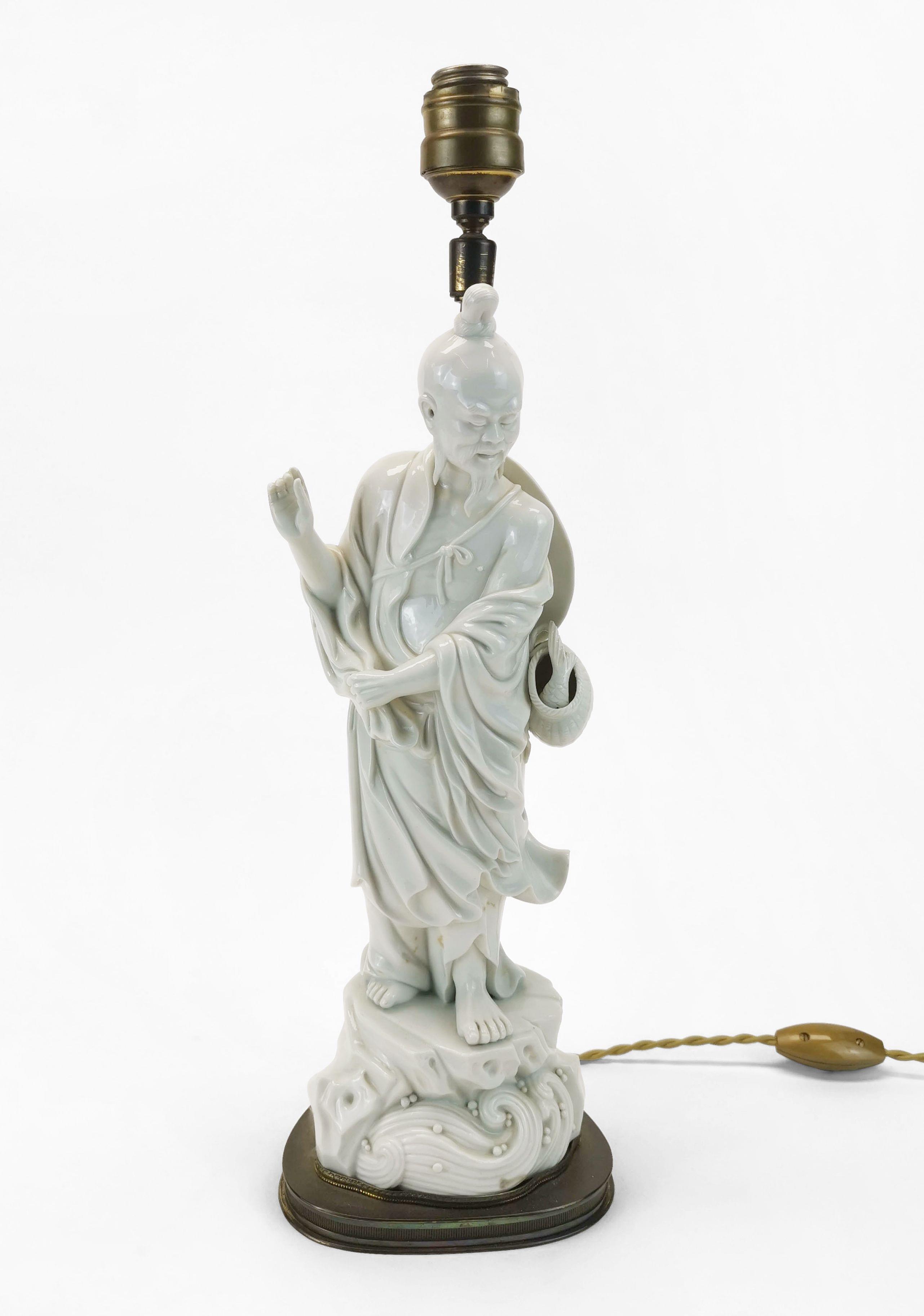 Faïence émaillée bleu blanc, monture en bronze doré, H 44 cm