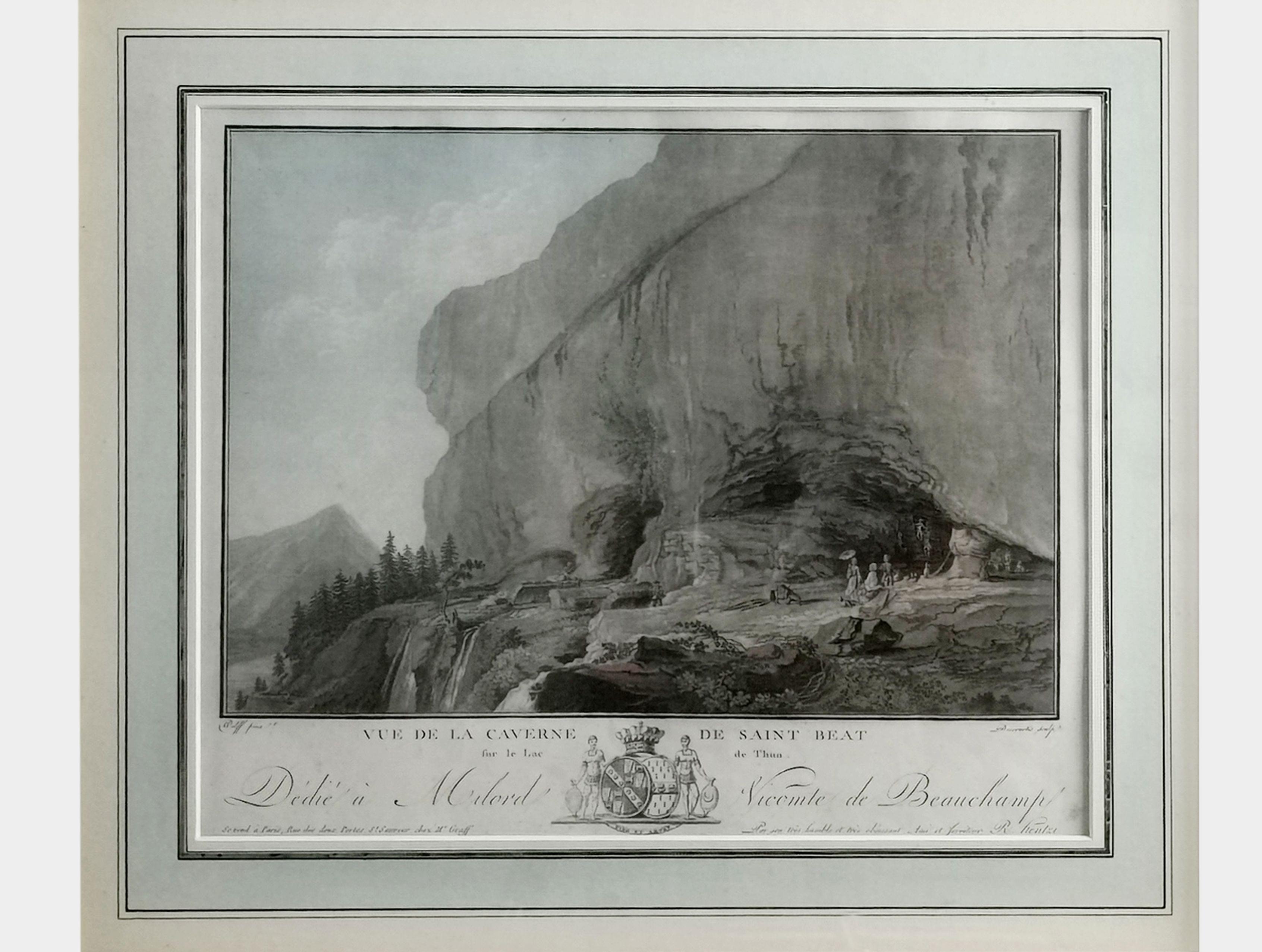 Glacier de Lauteraar et Caverne de Saint Beat, deux estampes en couleurs, 29x34 cm