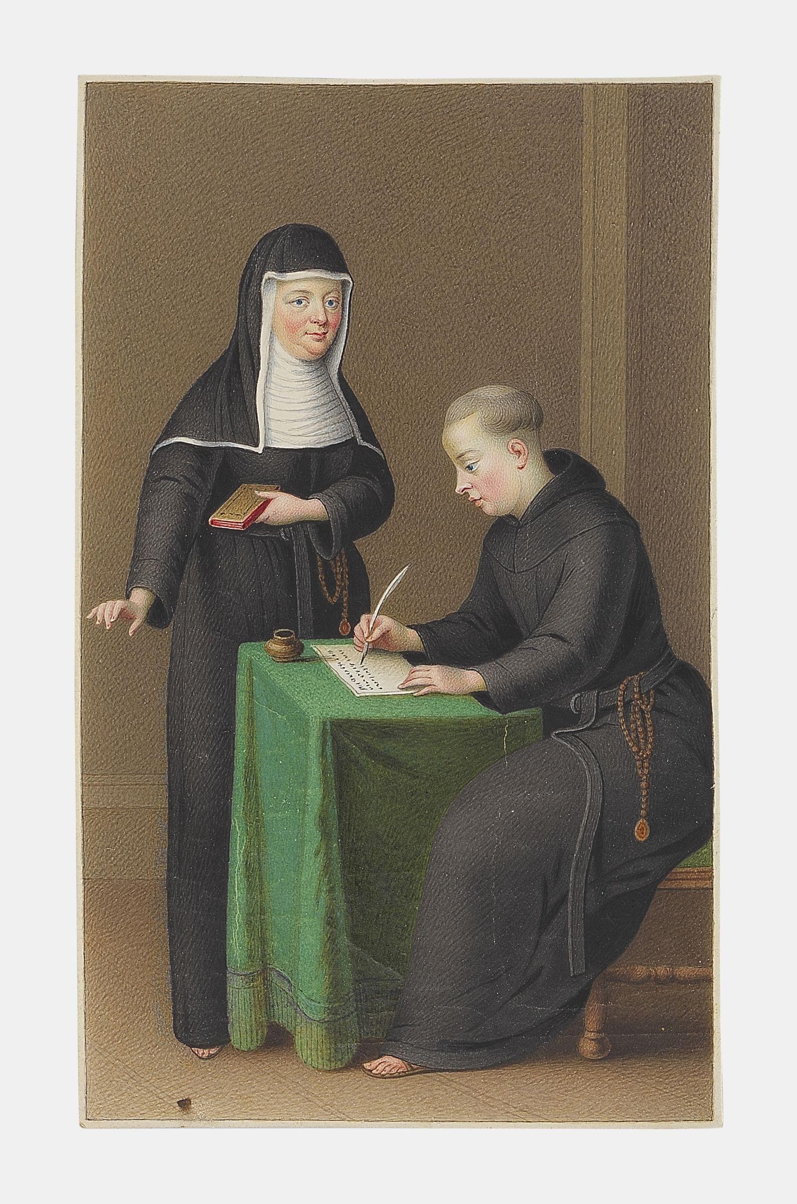 254. Ecole autrichienne XVIIIe s, image pieuse représentant une bonne sœur et un moine