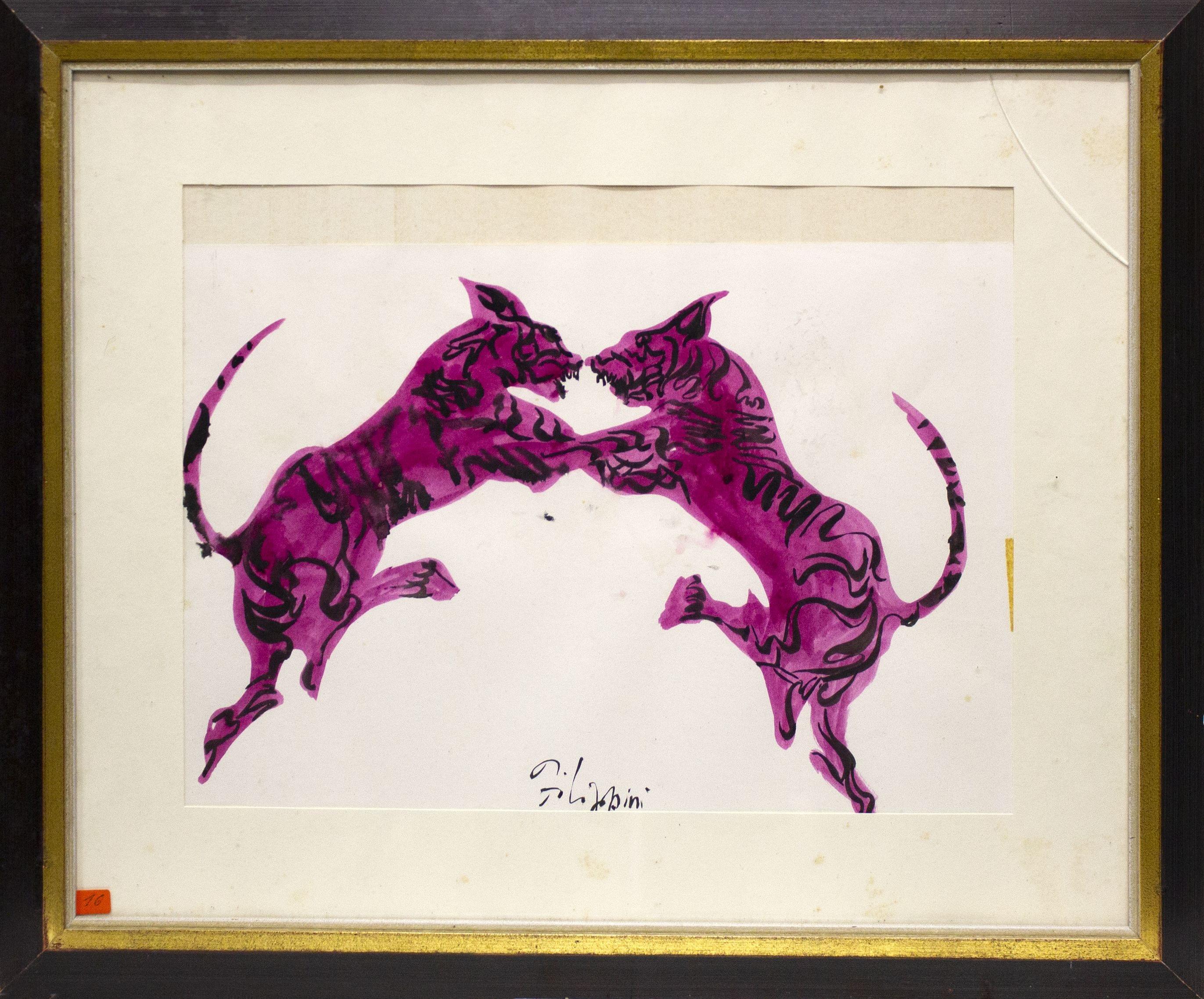 Taureau en haut de l'escalier, marqueur rouge sur papier, signé,...