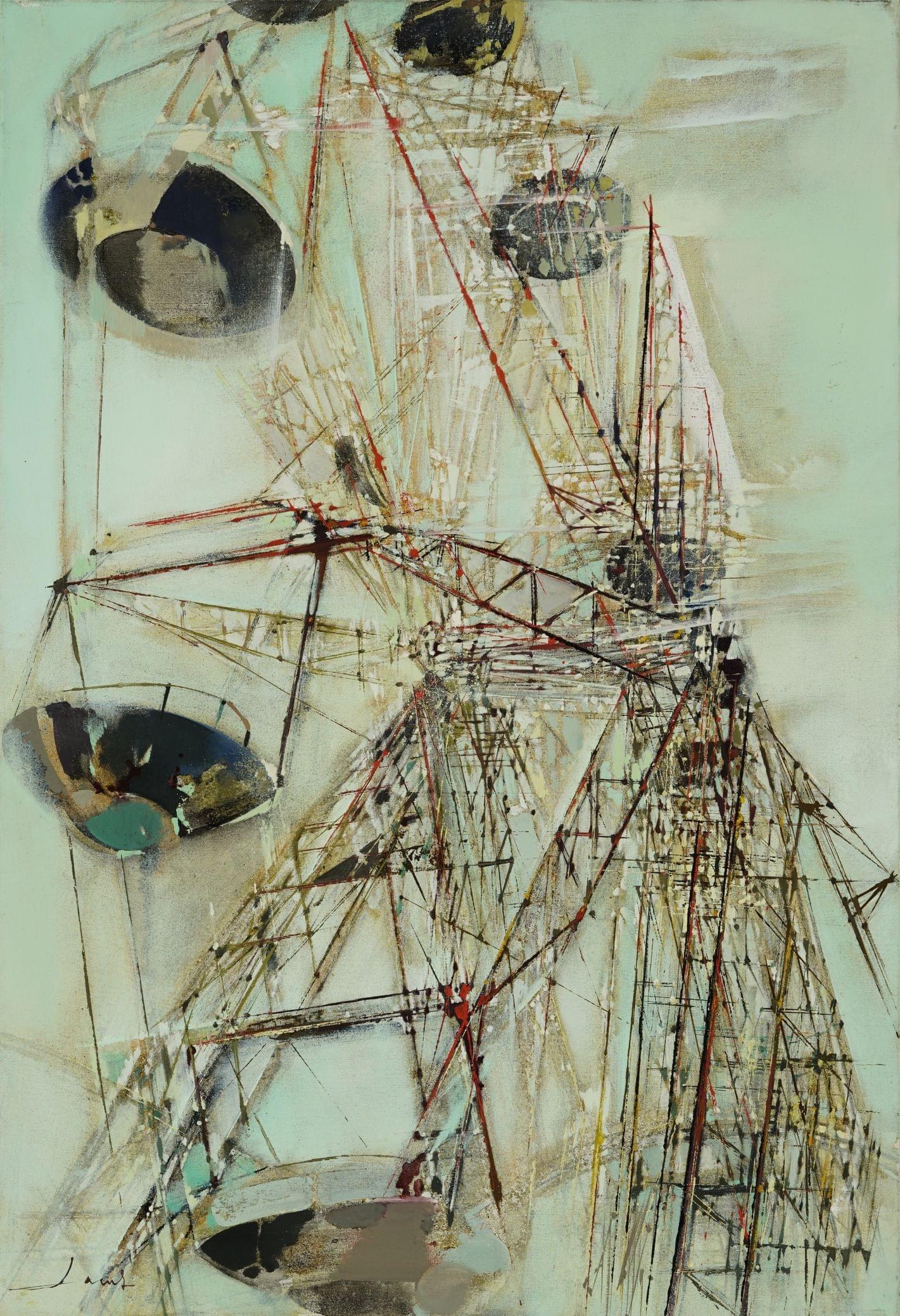 Bœufs sous les arbres, huile sur toile signée, 54x73 cm