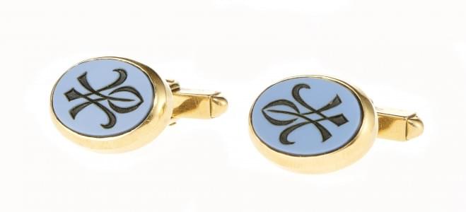 4323. Boutons de manchette sertis d'une intaille sur calcédoine