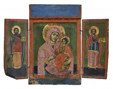 4356. Tryptique, Vierge à l'Enfant, et saints Côme et Damien