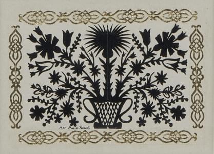 Découpage à motif d'un bouquet de fleurs, signé et daté 1974, 14...