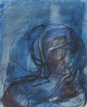Portrait de femme tricotant, pastel sur papier, 90x64 cm