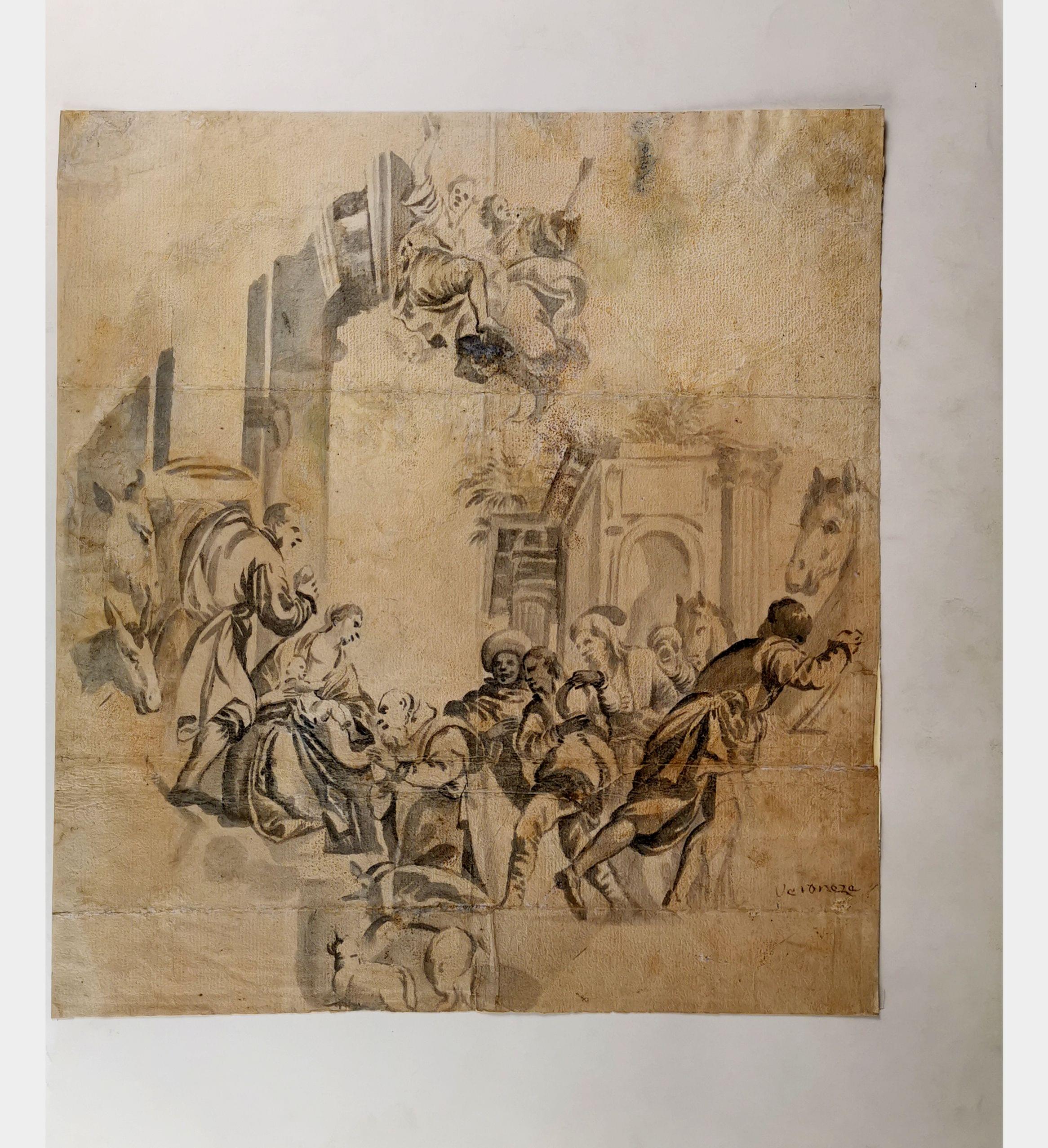 Adoration des Mages, lavis sur papier, d'après le tableau conservé à la National Gallery à Londres, 38x37 cm
