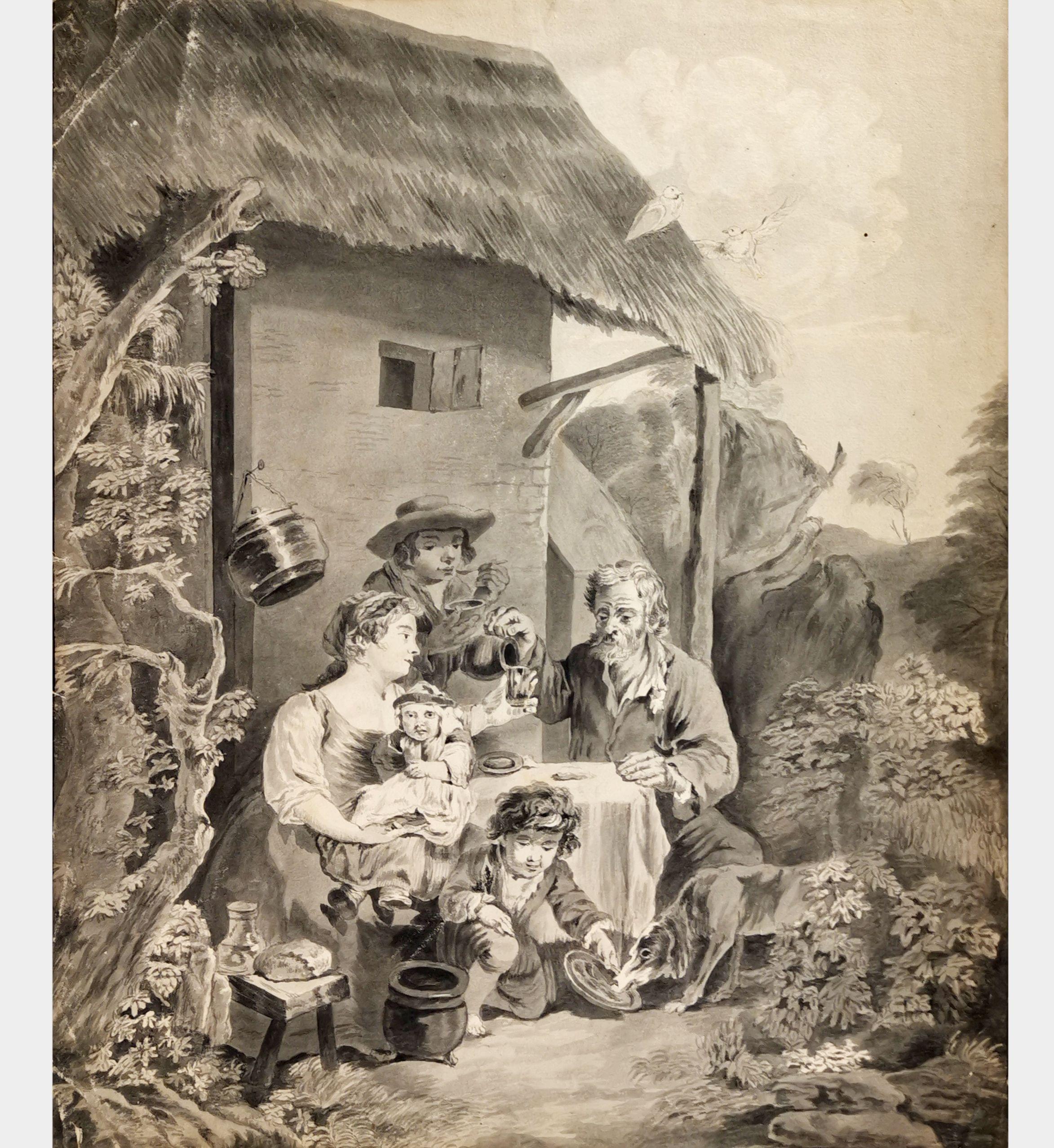 Le repas paysan, lavis d'encre sur papier, 39x33 cm