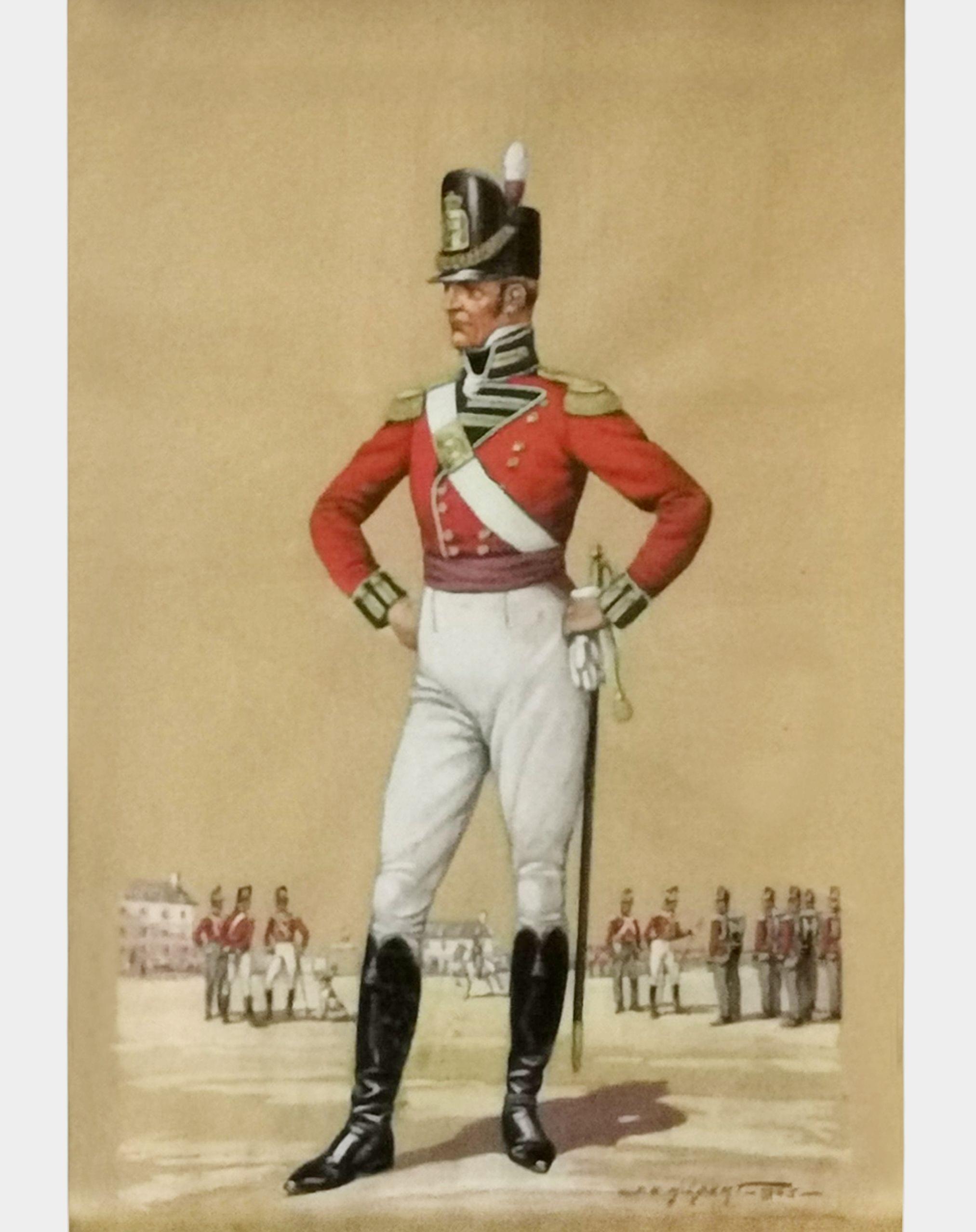 Soldats en uniforme, paire d'aquarelles et gouaches sur papier, 30x18 cm