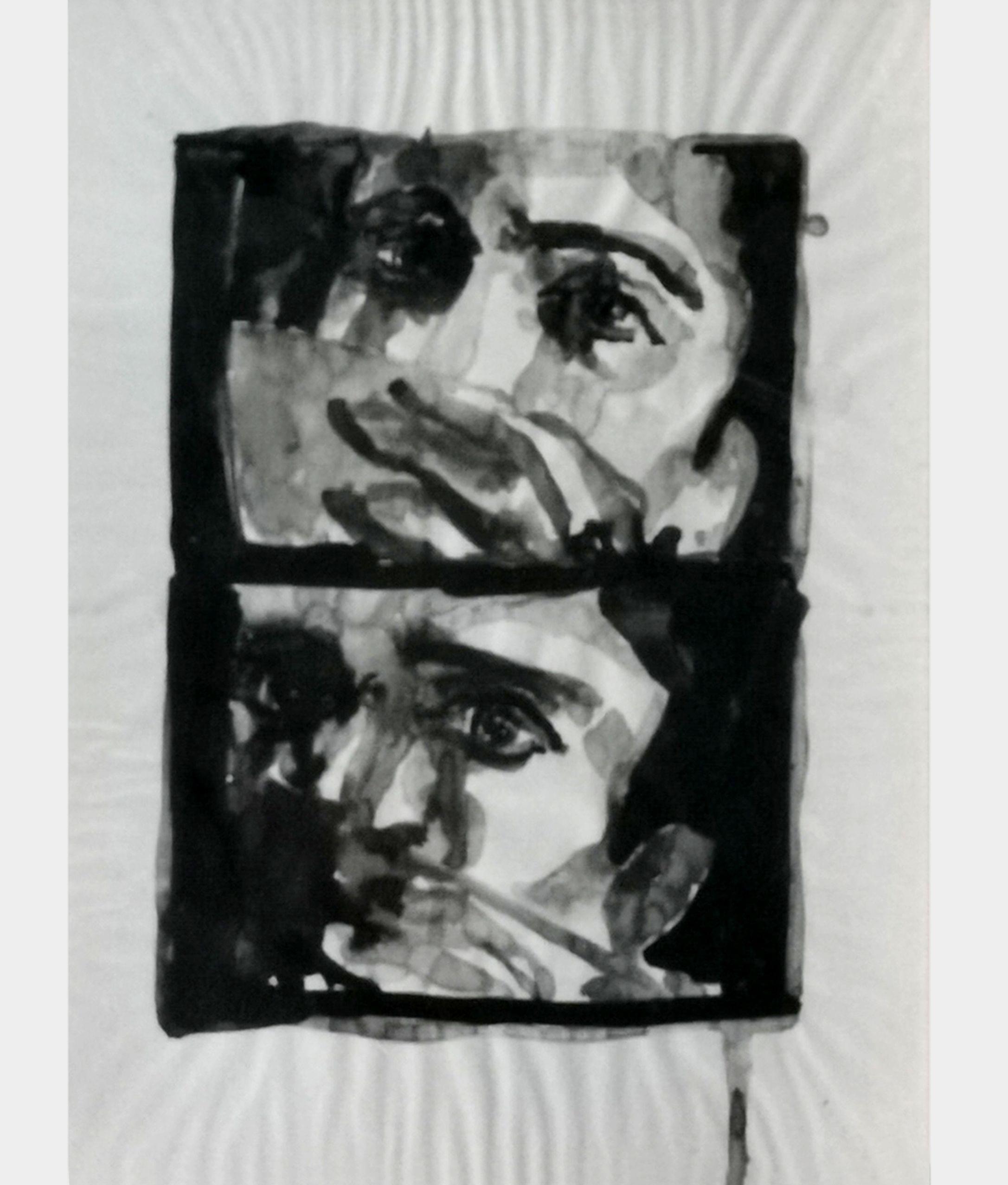 Composition à la ligne verte, huile sur toile, signée au dos, 40...