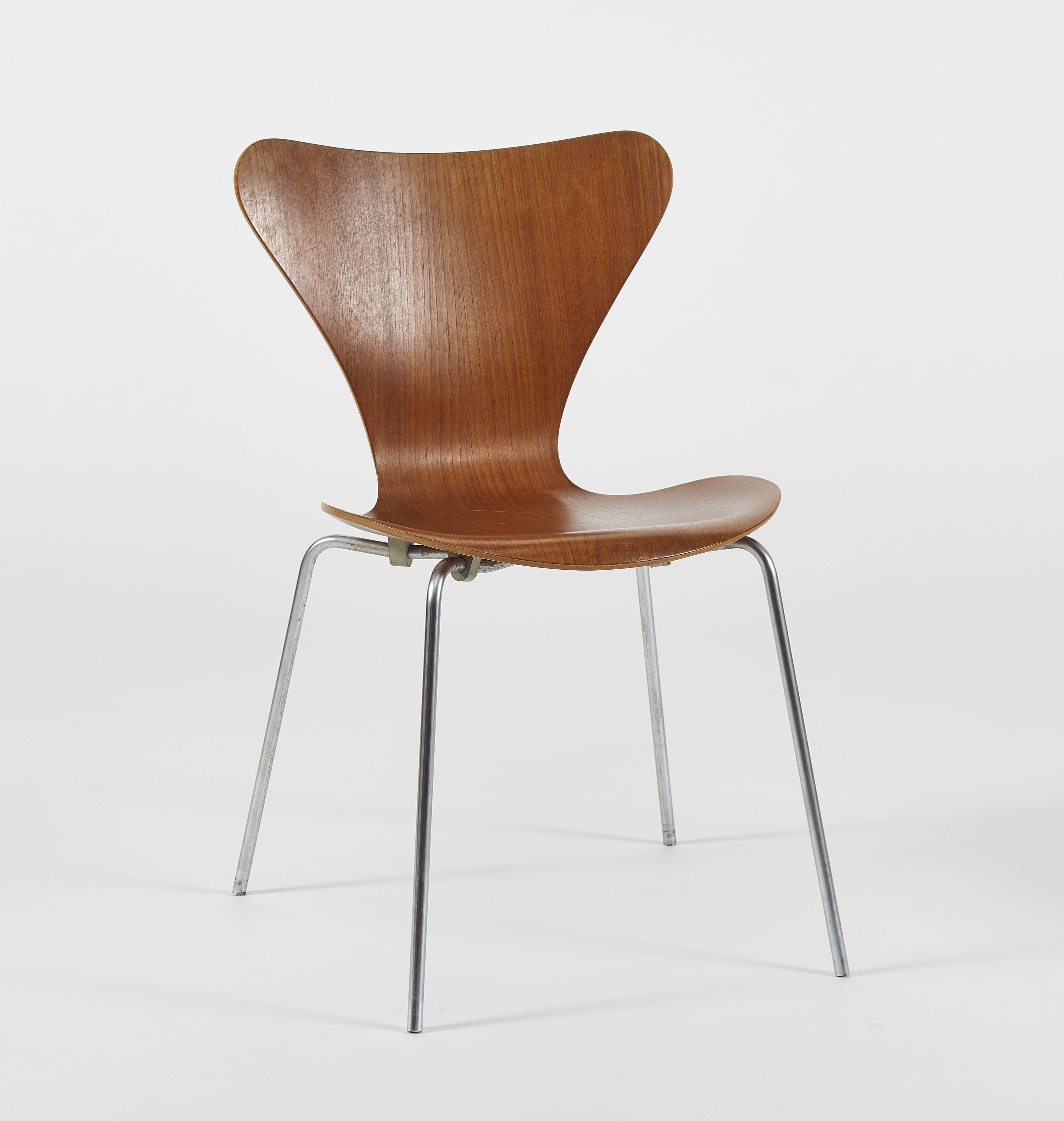 Chaise série 7, bois et métal, édition Fritz Hansen. Provenance: collection baronne Marion Lambert
