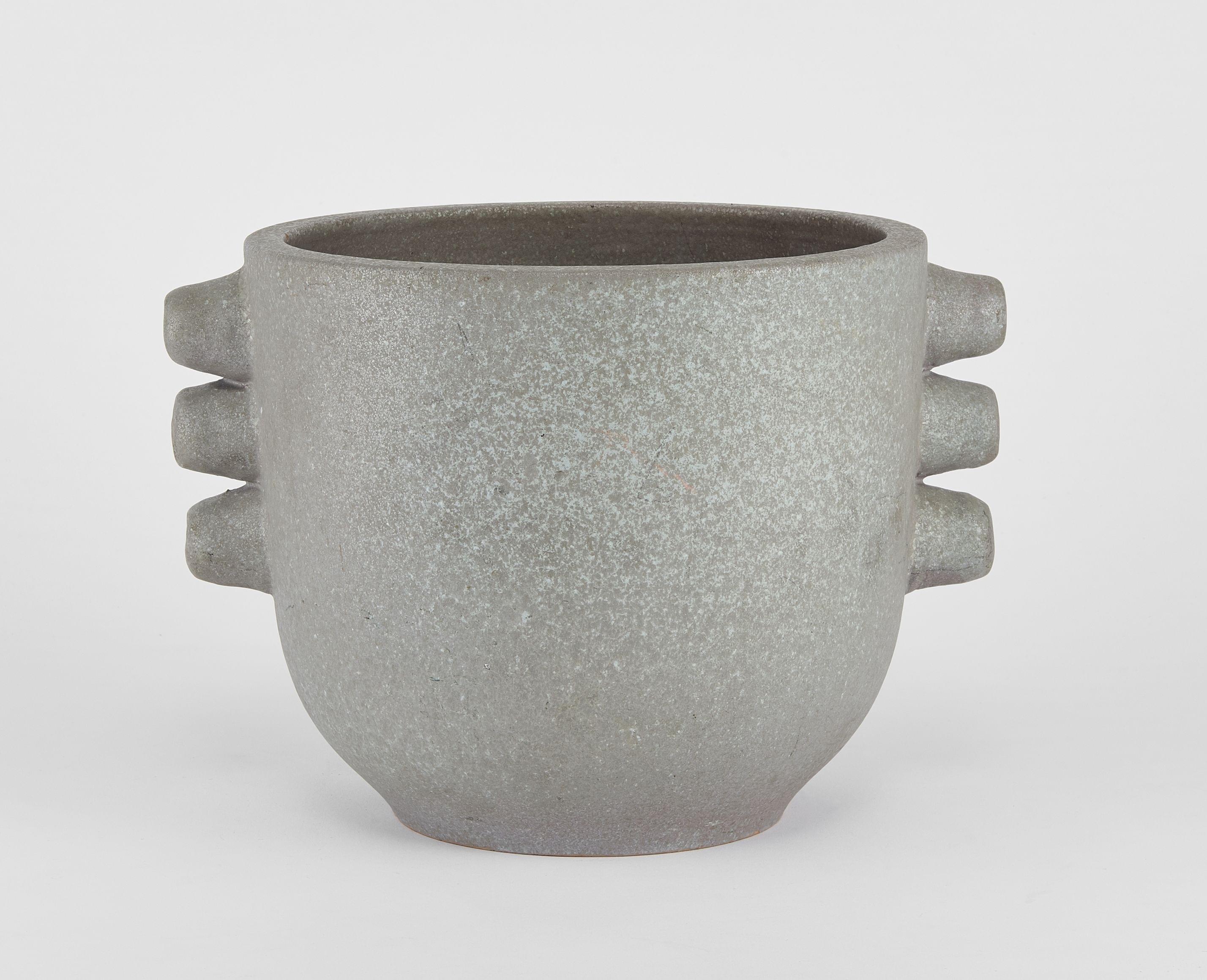 Cache-pot à anses latérales modernistes, céramique émaillée grise, H 18 cm