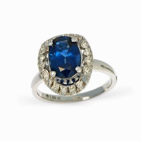 469. Bague sertie d'un saphir taille ovale entouré de diamants