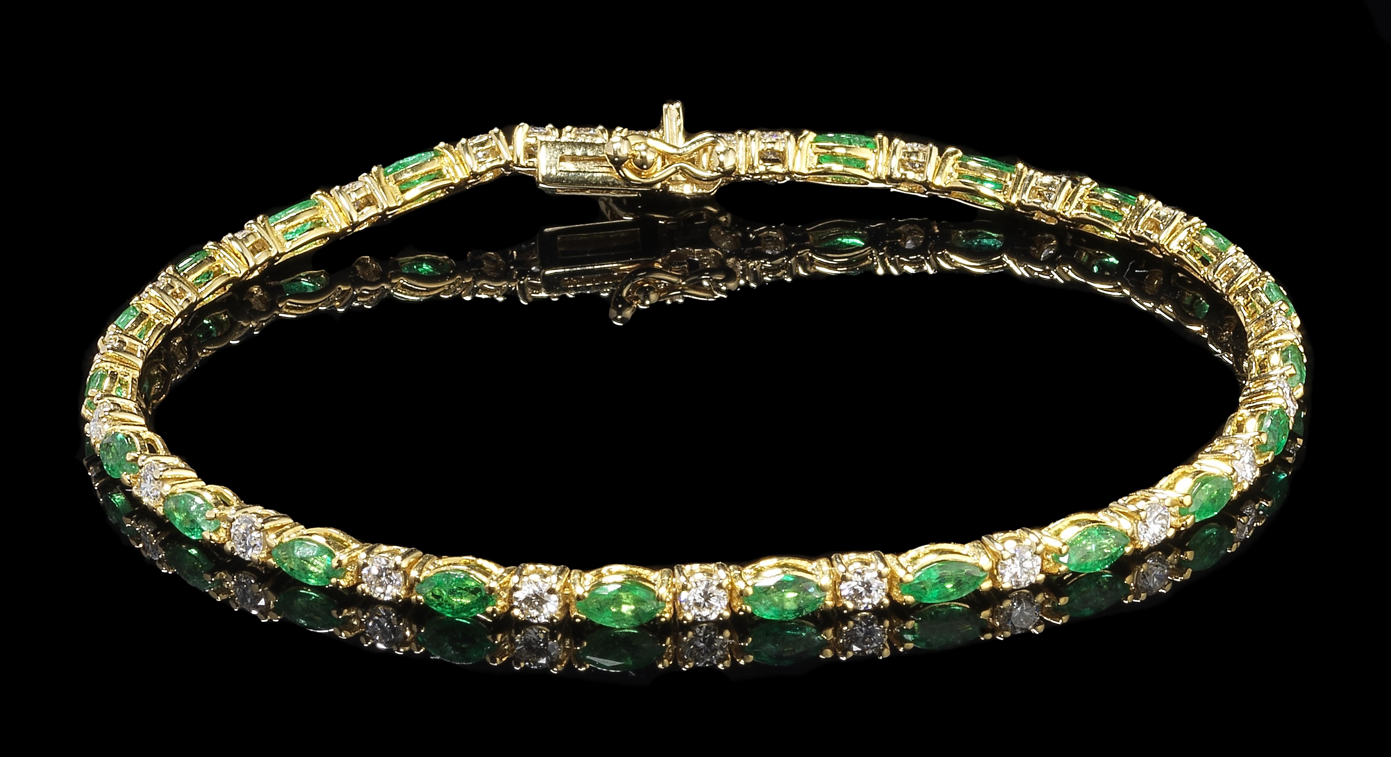 101. *Bracelet ligne serti d'émeraudes taille marquise (env. 1,8 ct) alternées de diamants taille brillant (env. 1 ct)