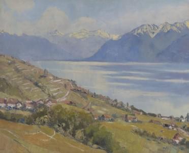 Le Lavaux, huile sur toile, signée, 65x82 cm. Collection David S...