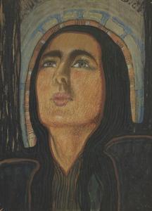 Gasparine, Valaisanne en prière, pastel sur papier, signé, daté...