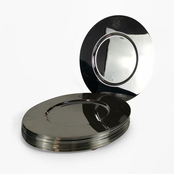 4154. Suite de 12 assiettes de présentation à bordure droite