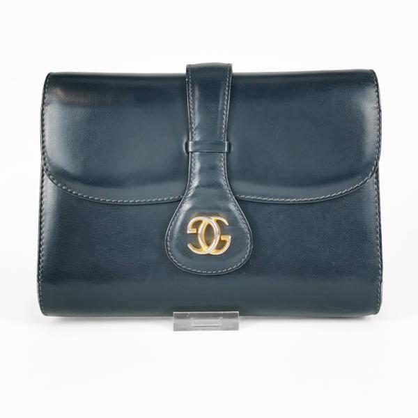 Cuir de veau bleu, fermeture en rabat avec pression logo GG, int...
